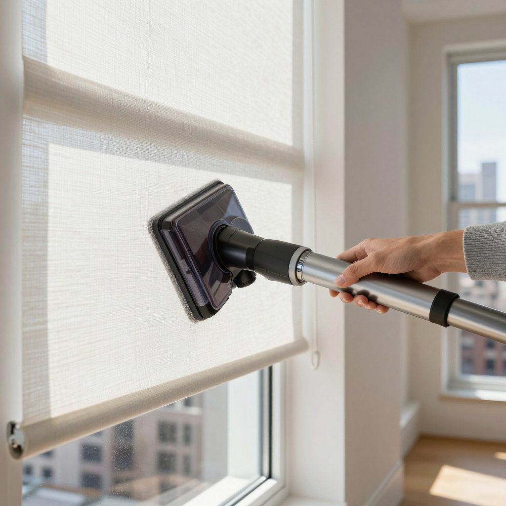 Cellular shades have honeycomb structures that trap dust inside. Cellular shade cleaning requires specialized vacuuming to remove dust from those hidden pockets. We use vacuum attachments designed for cellular shades that pull dust out of the cells without damaging the delicate fabric pleats.