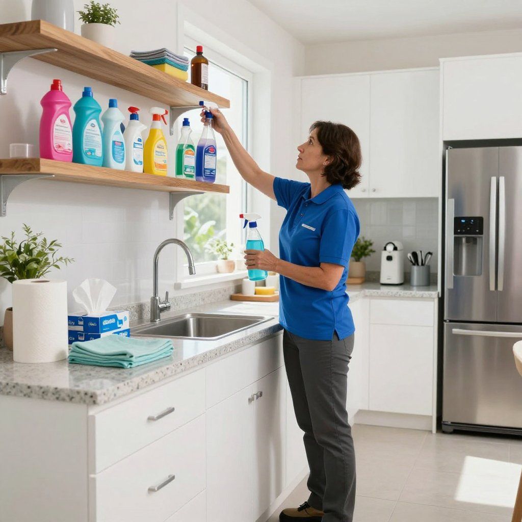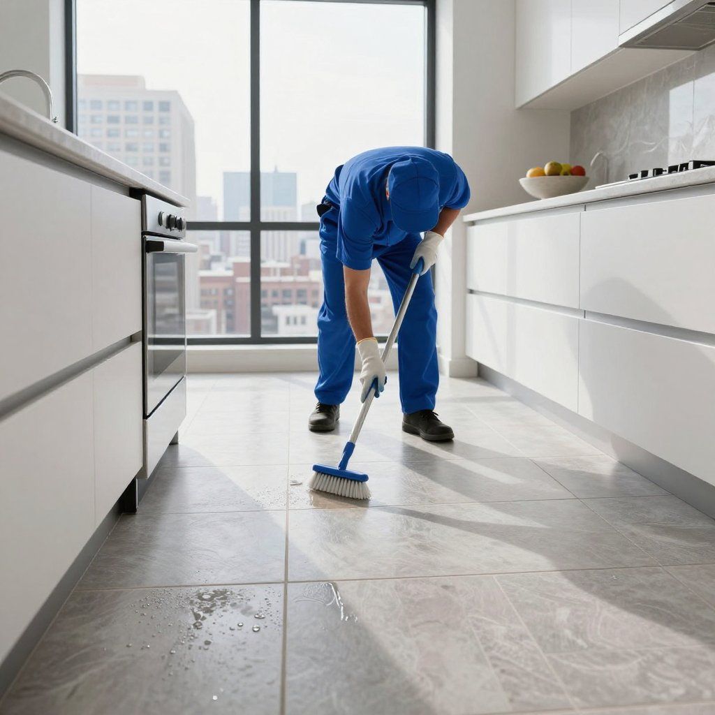 Kitchen cleaning covers inside the oven, fridge, freezer, cabinets, drawers, and all surfaces including floors. We pay attention to behind and under appliances for thoroughness.